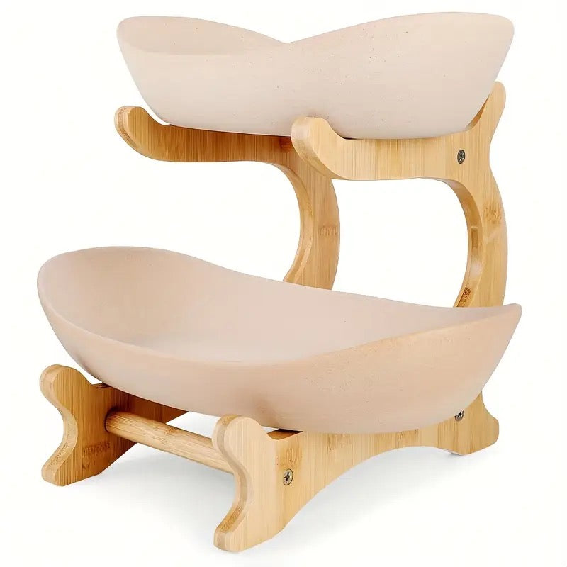Bring harmony and elegance to your kitchen or dining table with this two-tier bamboo and ceramic serving stand. Designed with eco-friendly bamboo support and smooth, leaf-shaped ceramic bowls, it perfectly combines natural beauty with modern design. Ideal for showcasing fruits, snacks, or appetizers, this stand enhances both everyday dining and special occasions while saving space with its vertical layout.